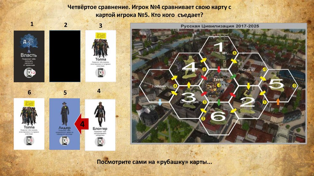 Четвёртое сравнение. Игрок №4 сравнивает свою карту скартой игрока №5. Кто кого съедает?