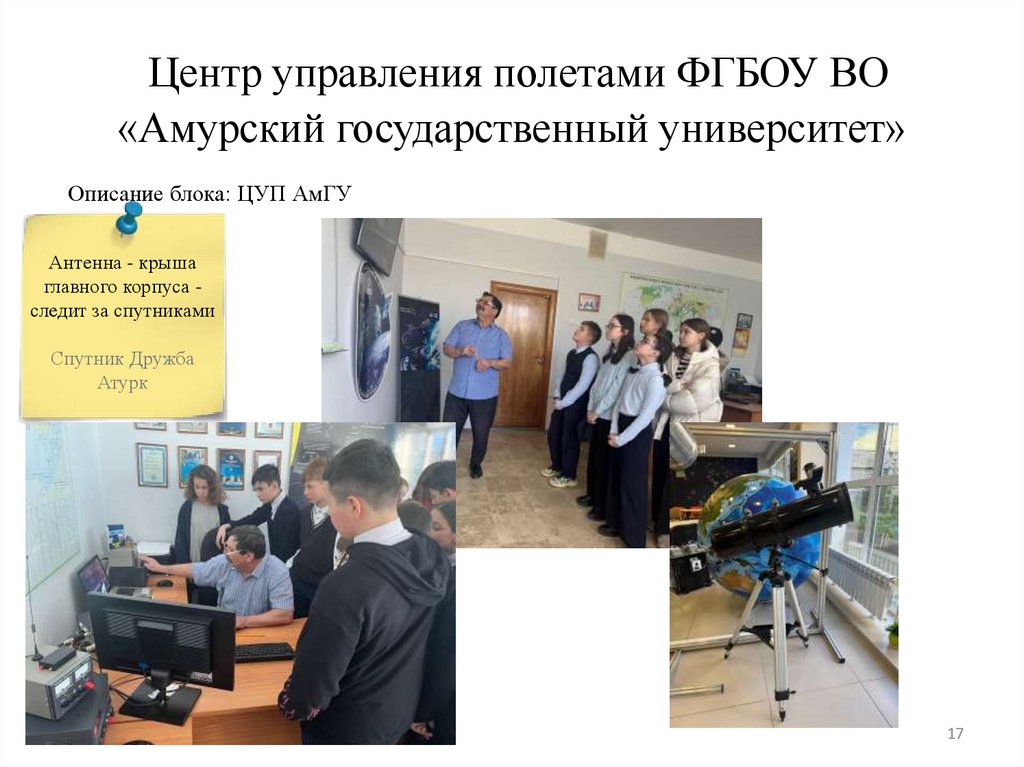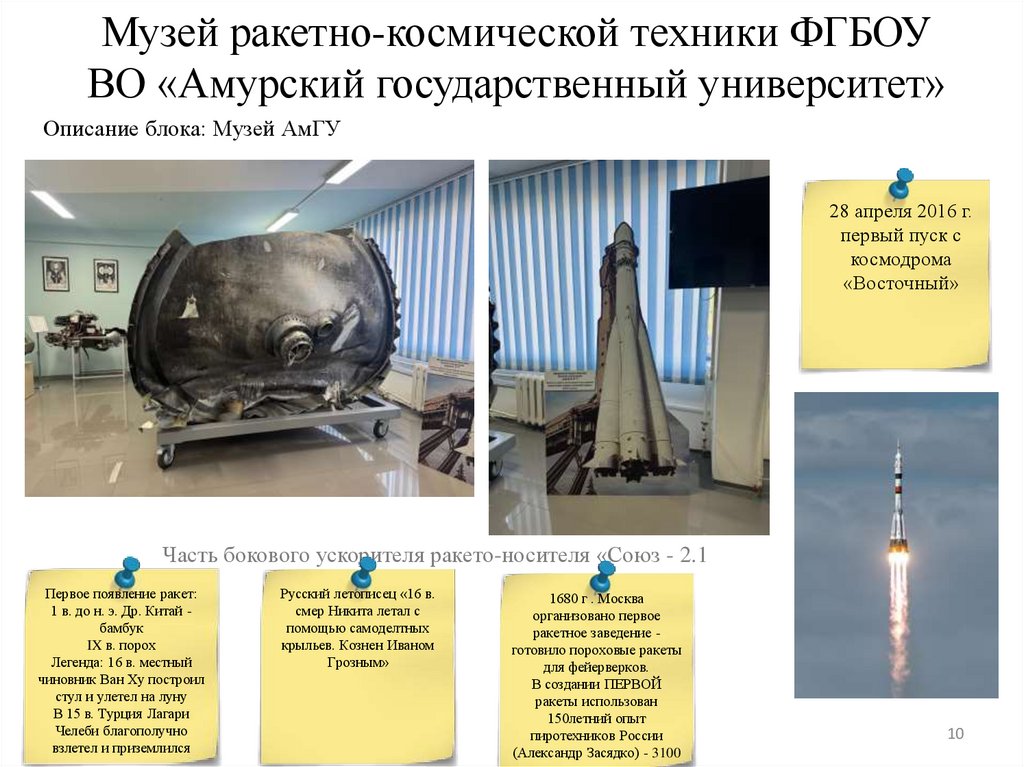 космонавтики в России, знакомство с историей и современными достижениями в ракетнокосмической отрасли, освоение знаний о роли Амурского государственного университета и
