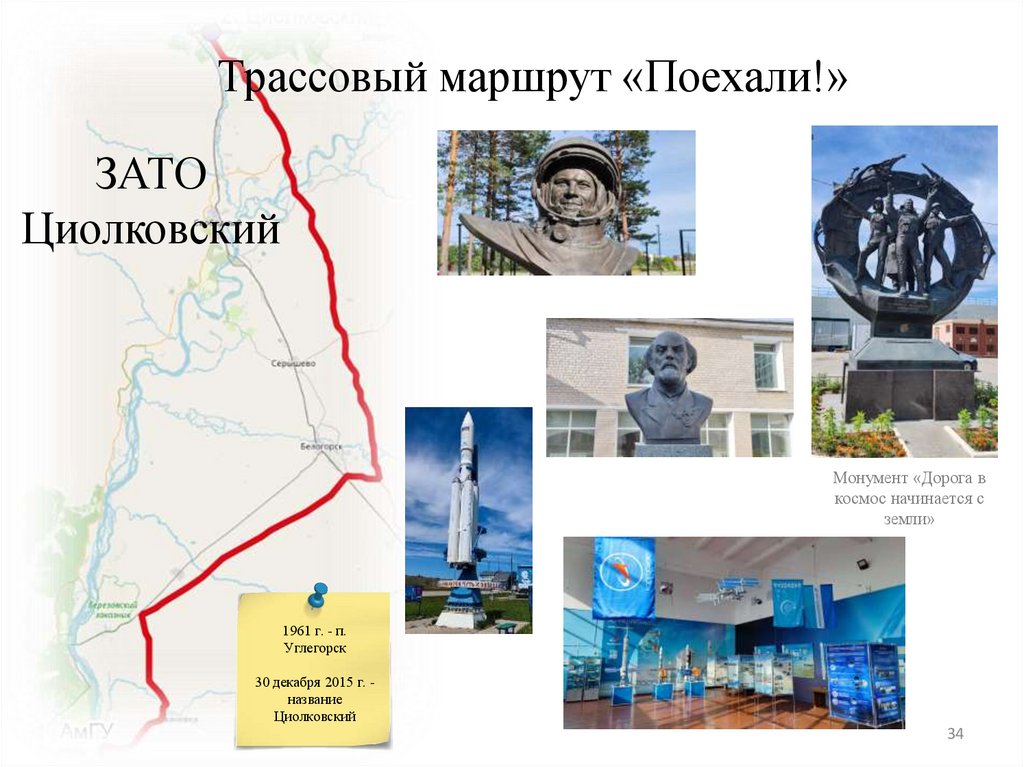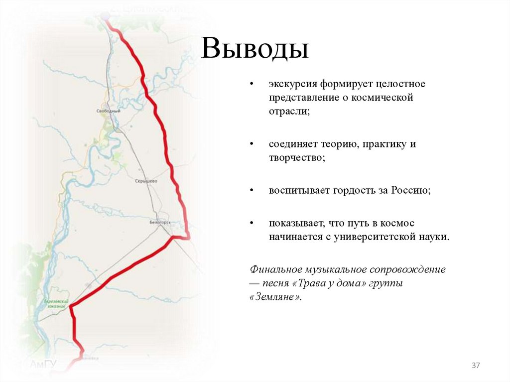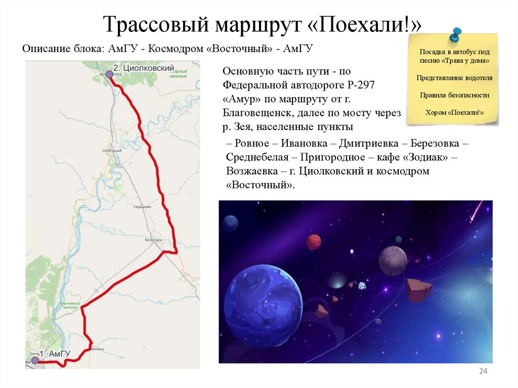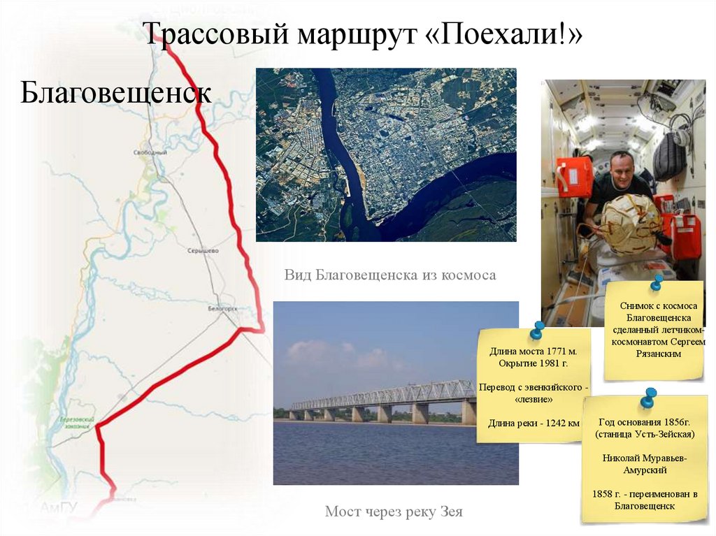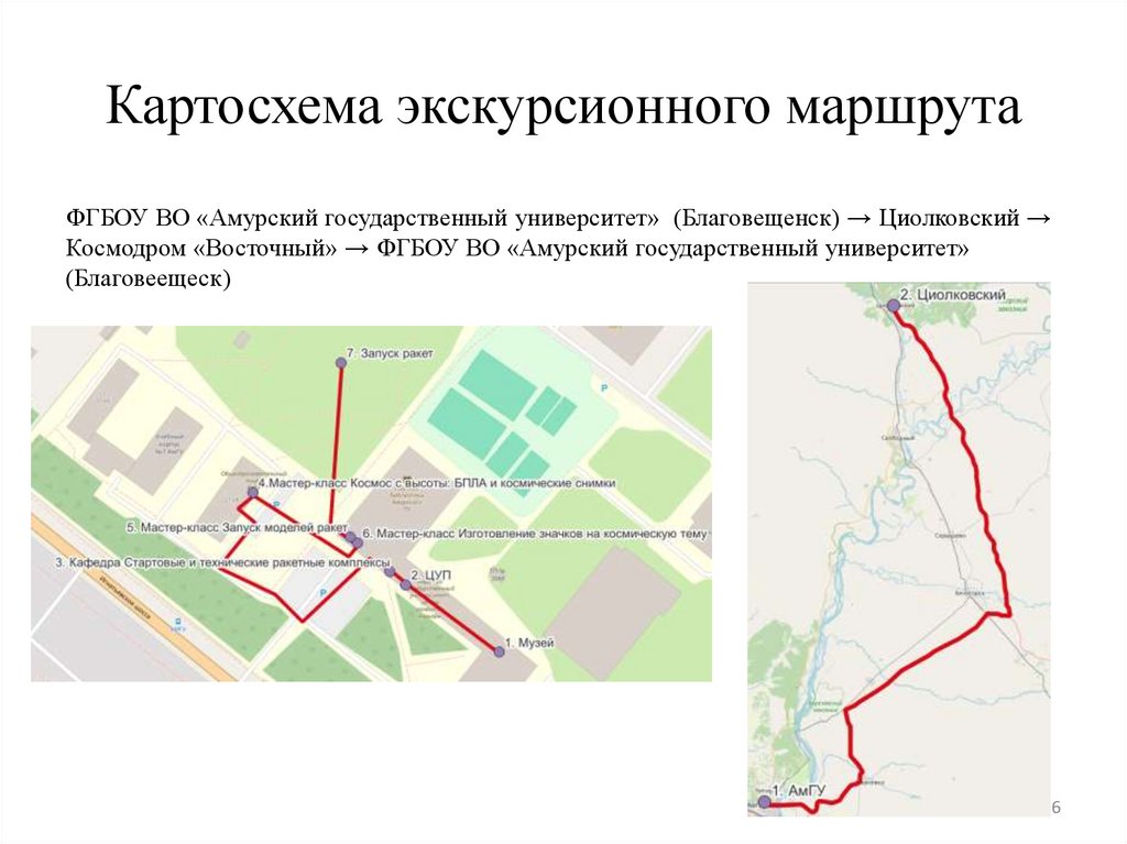 Картосхема экскурсионного маршрутаФГБОУ ВО «Амурский государственный университет» (Благовещенск) → Циолковский →