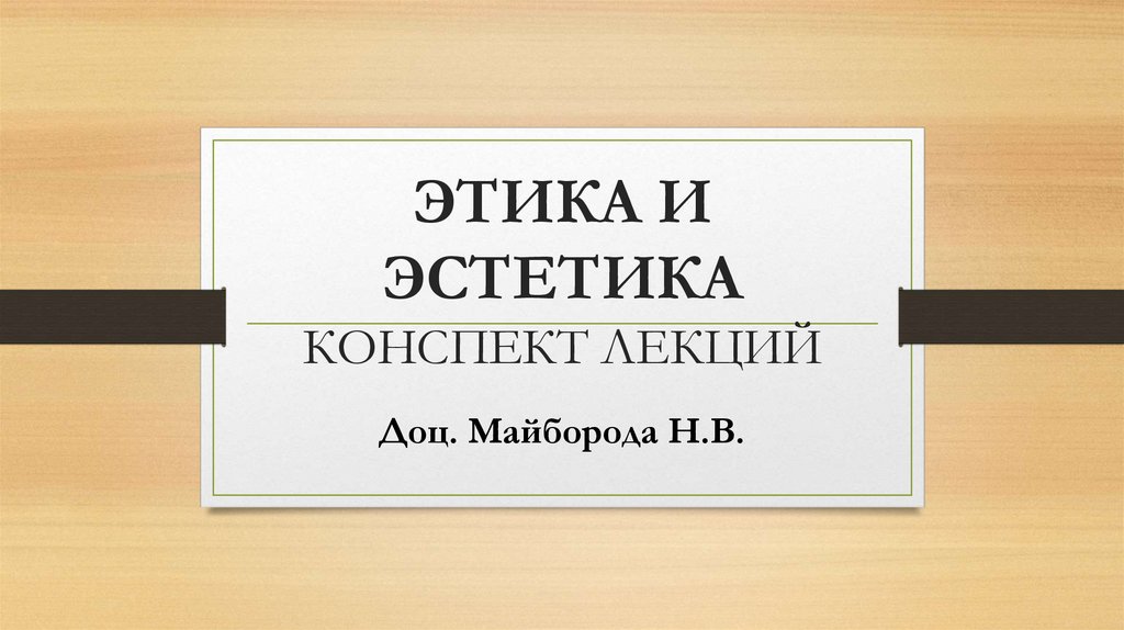 1. ЭТИКА И ЭСТЕТИКА КОНСПЕКТ ЛЕКЦИЙ