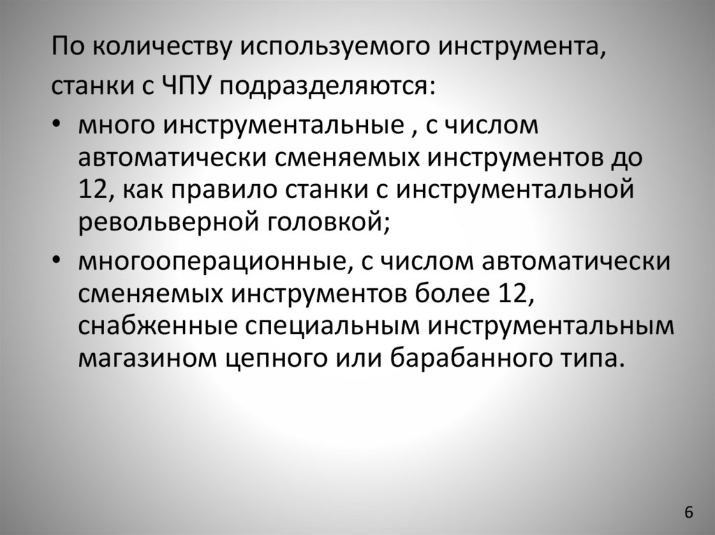 По количеству используемого инструмента,станки с ЧПУ подразделяются: