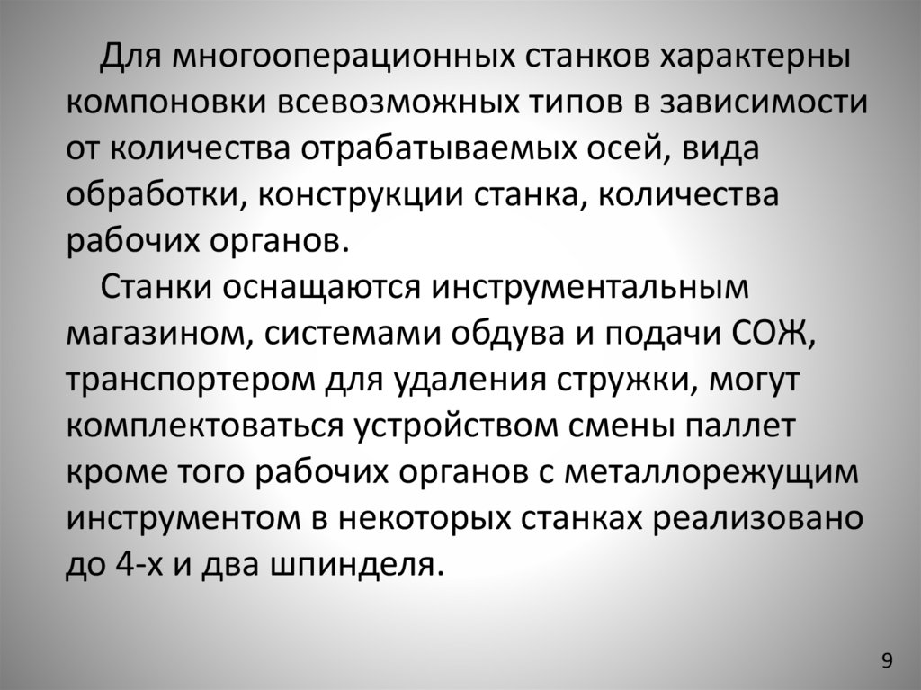 Для многооперационных станков характерныкомпоновки всевозможных типов в зависимости