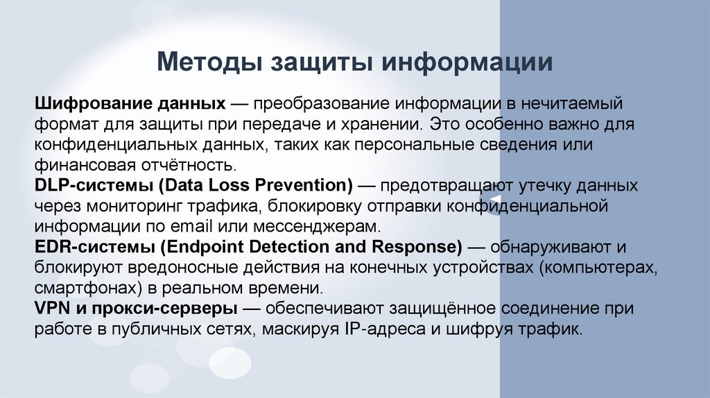 DLP-системы (Data Loss Prevention) — предотвращают утечку данных
