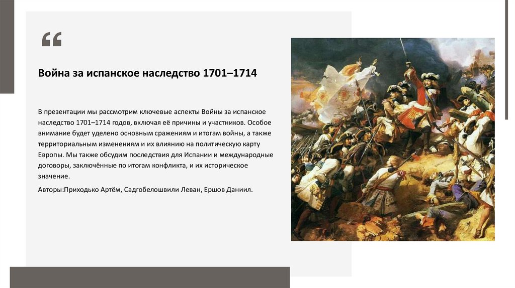 Война за испанское наследство 1701–1714В презентации мы рассмотрим ключевые аспекты Войны за испанское