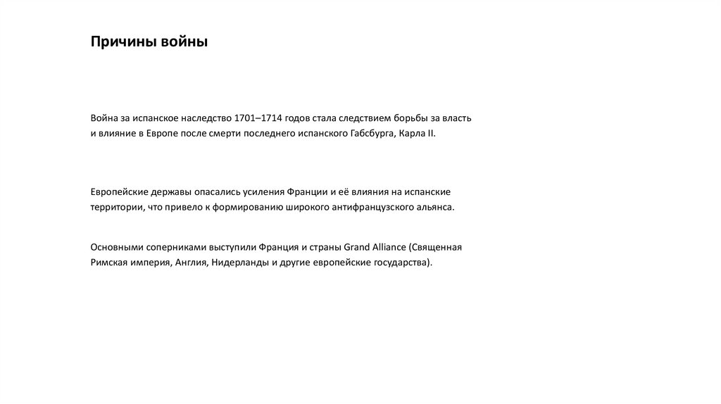Причины войныВойна за испанское наследство 1701–1714 годов стала следствием борьбы за власть