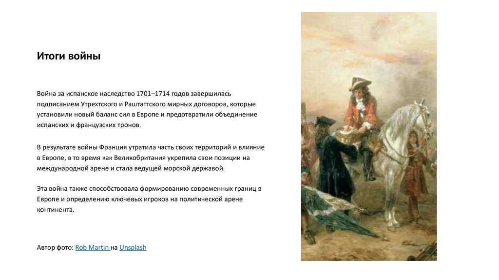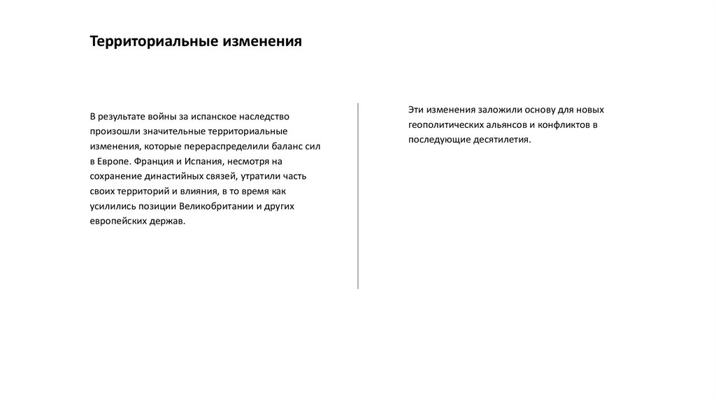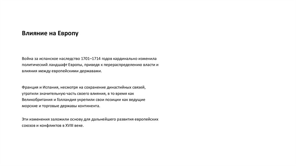 Влияние на ЕвропуВойна за испанское наследство 1701–1714 годов кардинально изменила