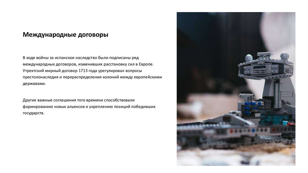 Международные договорыВ ходе войны за испанское наследство были подписаны ряд