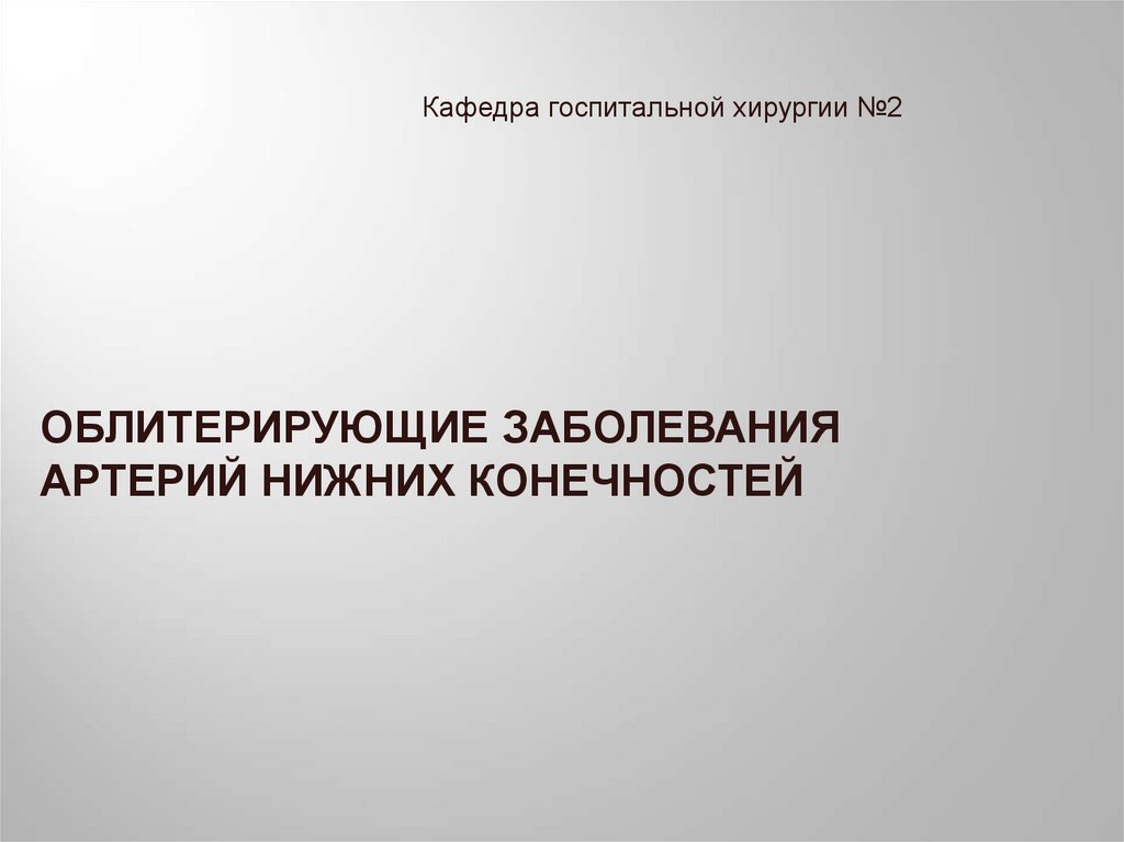 Кафедра госпитальной хирургии №2ОБЛИТЕРИРУЮЩИЕ ЗАБОЛЕВАНИЯ