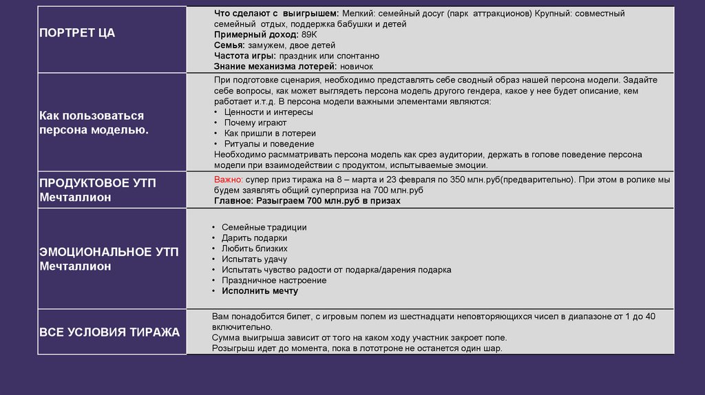 нашей ЦА описанный выше. Персона модель это описание среза аудитории по мотивации для игры. Персона модель может гендерно быть описана как