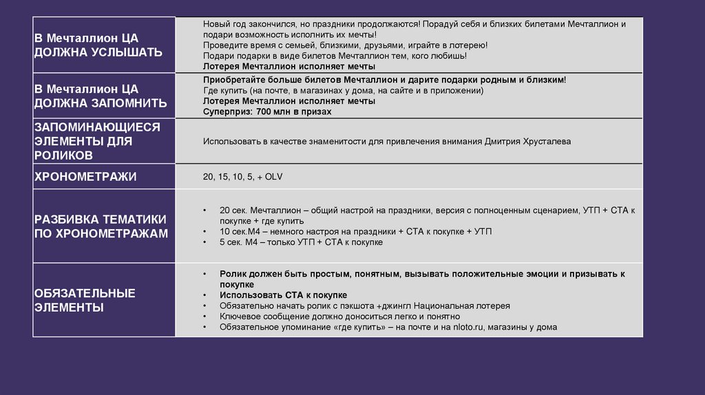 20 сек. Мечталлион – общий настрой на праздники, версия с полноценным сценарием, УТП + CTA к