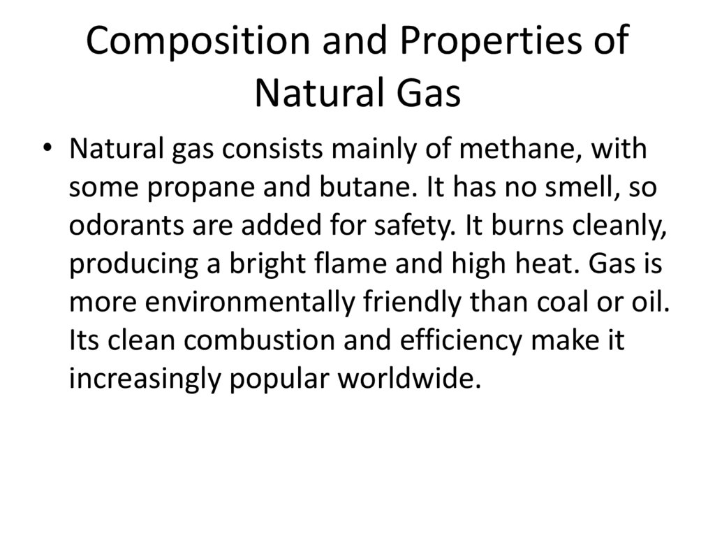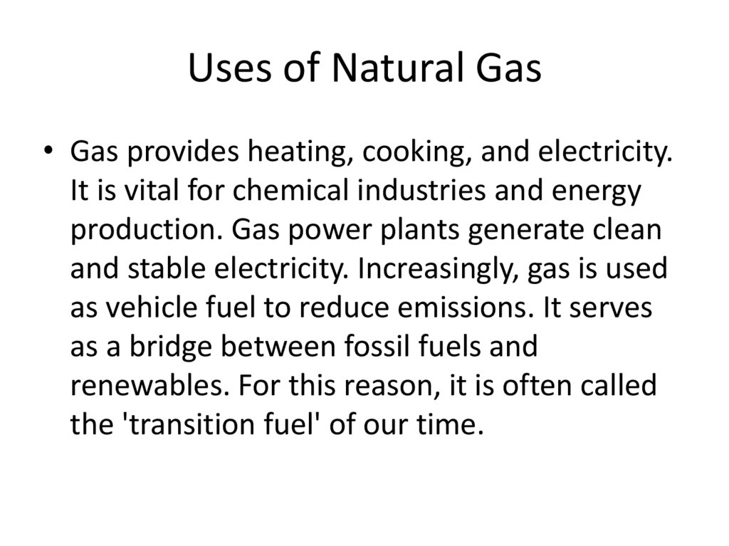 Uses of Natural Gas• Gas provides heating, cooking, and electricity.