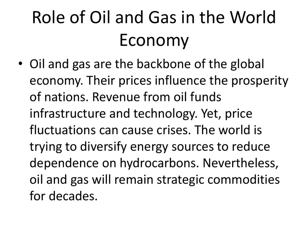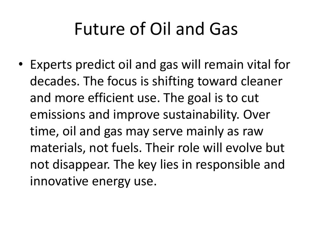 Future of Oil and Gas• Experts predict oil and gas will remain vital for