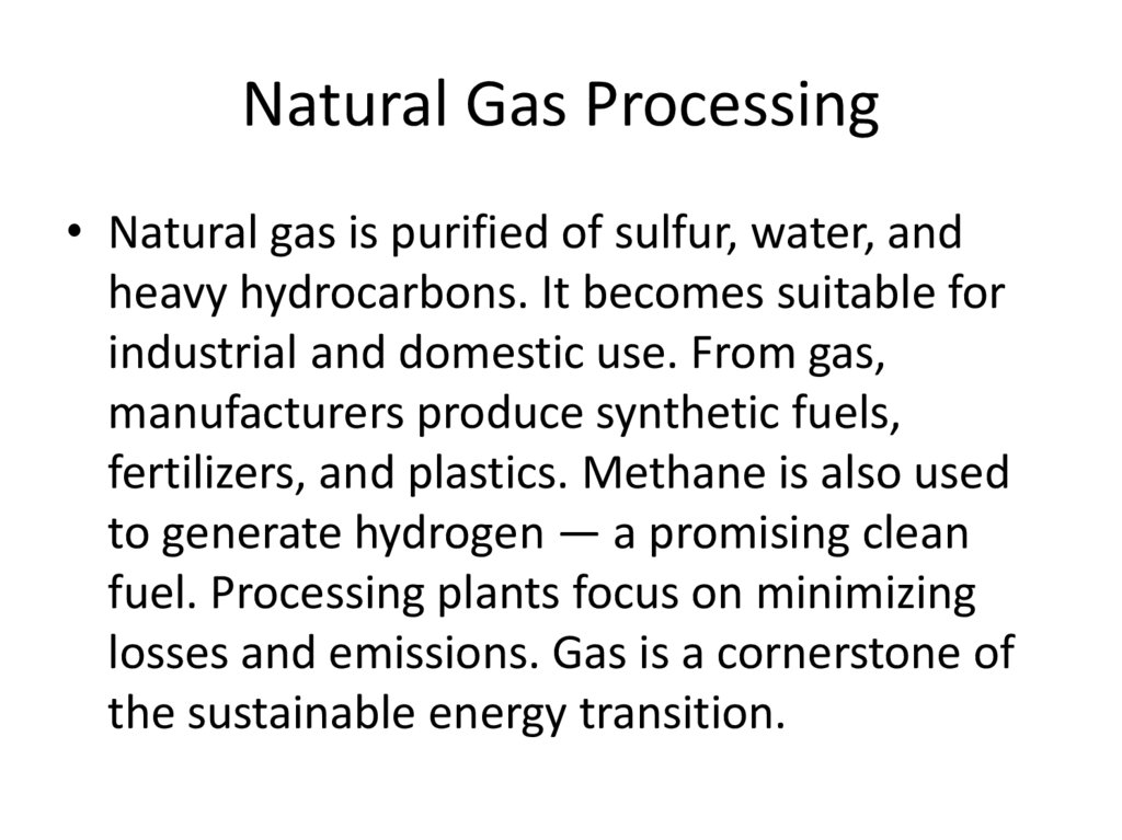 Natural Gas Processing• Natural gas is purified of sulfur, water, and