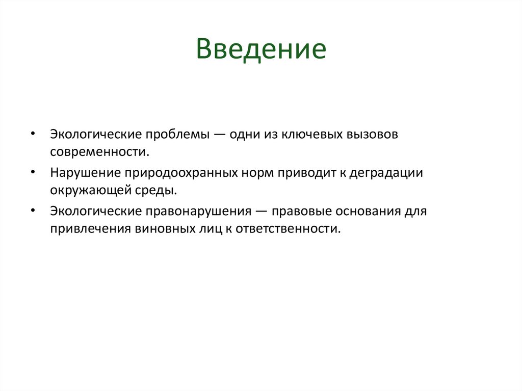 Введение• Экологические проблемы — одни из ключевых вызовов
