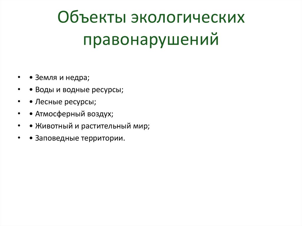 Объекты экологическихправонарушений
