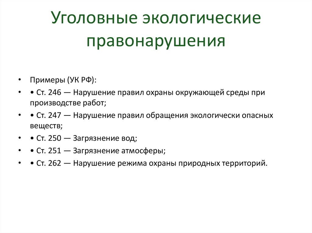 • Экологические правонарушения — правовые основания для