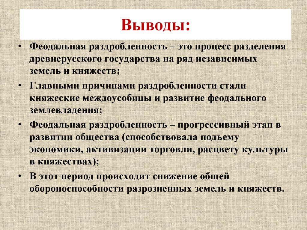 Выводы:• Феодальная раздробленность – это процесс разделения
