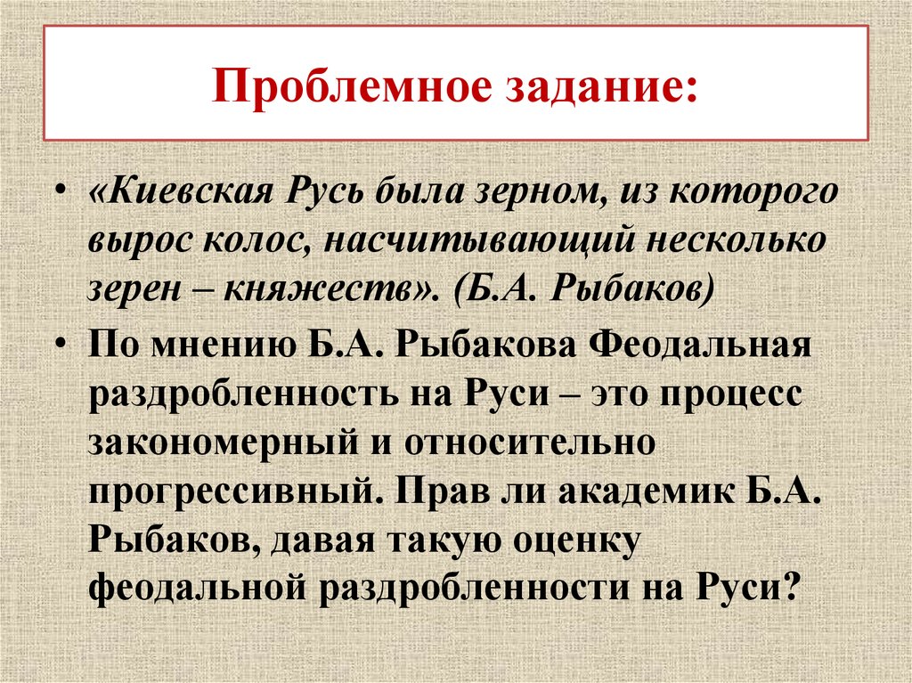 Проблемное задание:• «Киевская Русь была зерном, из которого