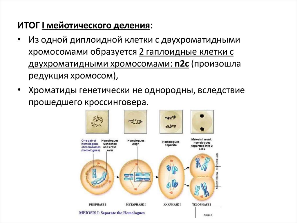 ИТОГ I мейотического деления:• Из одной диплоидной клетки с двухроматидными