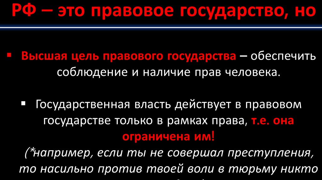 РФ – это правовое государство, но пВысшая цель правового государства – обеспечить