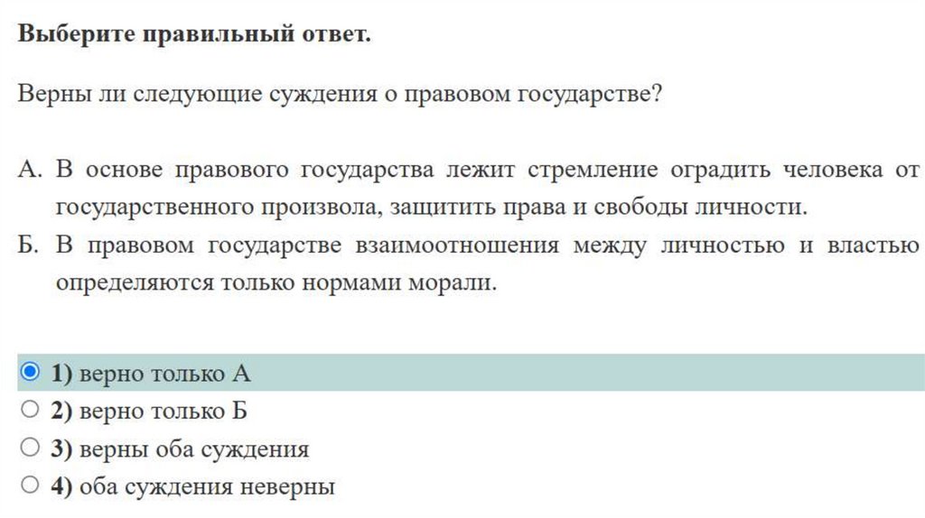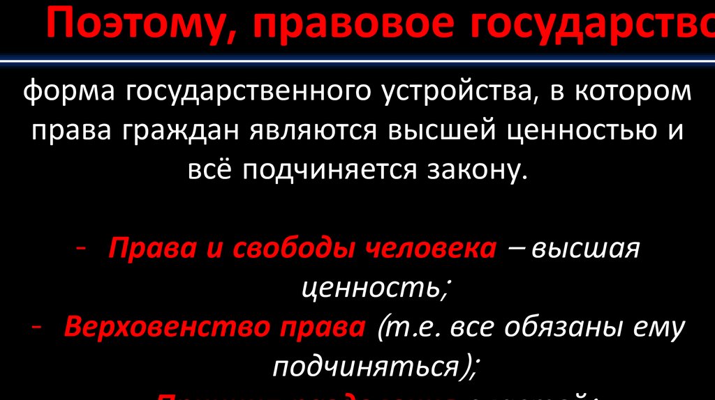 Поэтому, правовое государствоформа государственного устройства, в котором