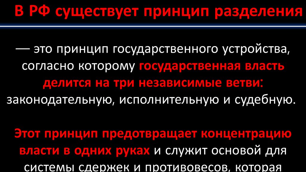 В РФ существует принцип разделения— это принцип государственного устройства,