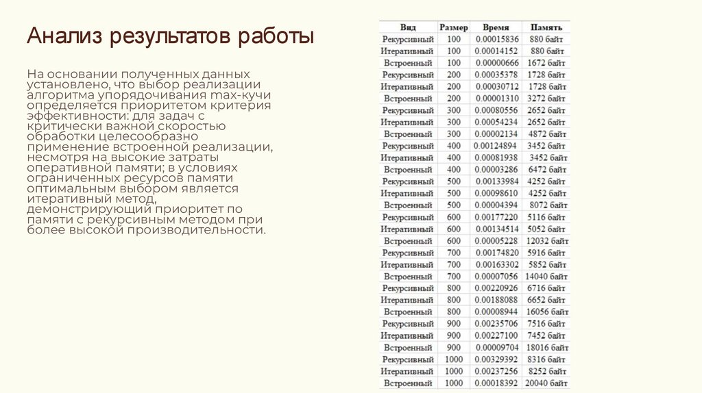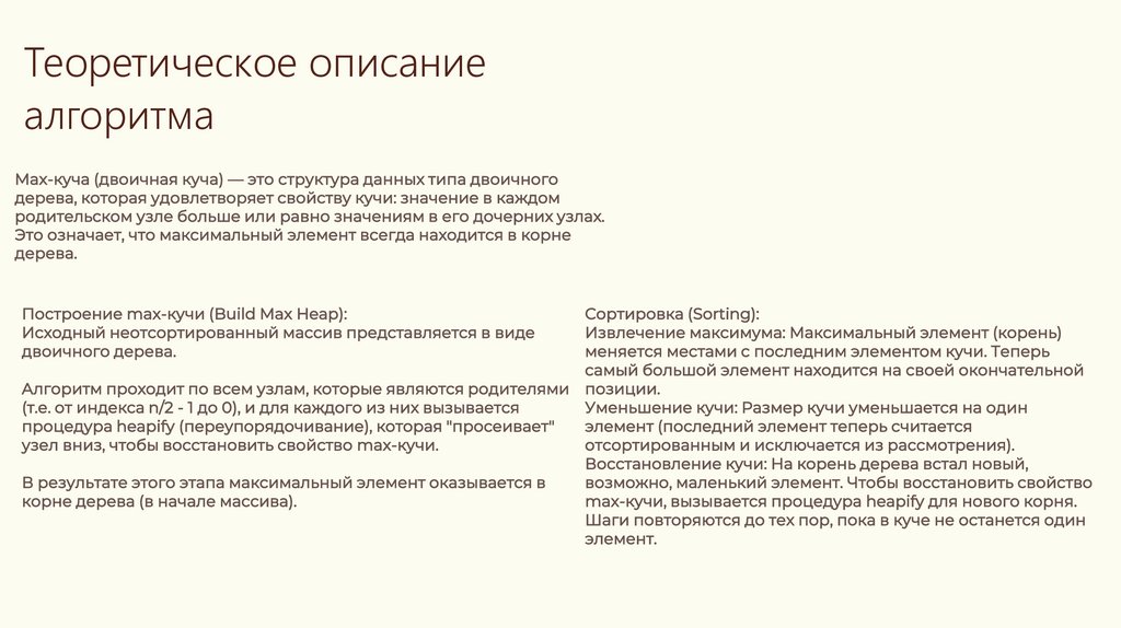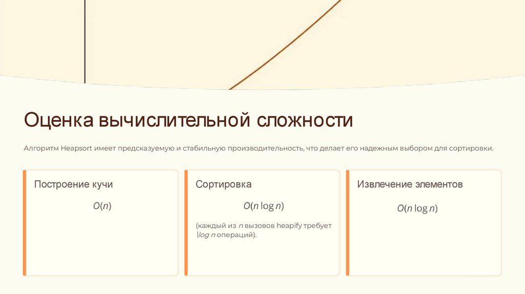 Оценка вычислительной сложностиАлгоритм Heapsort имеет предсказуемую и стабильную производительность, что делает его надежным выбором для сортировки.