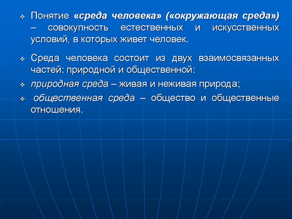 понятия «экология человека». Понятие