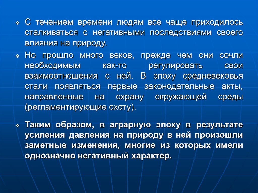 человеком на природу. Появляется понятие