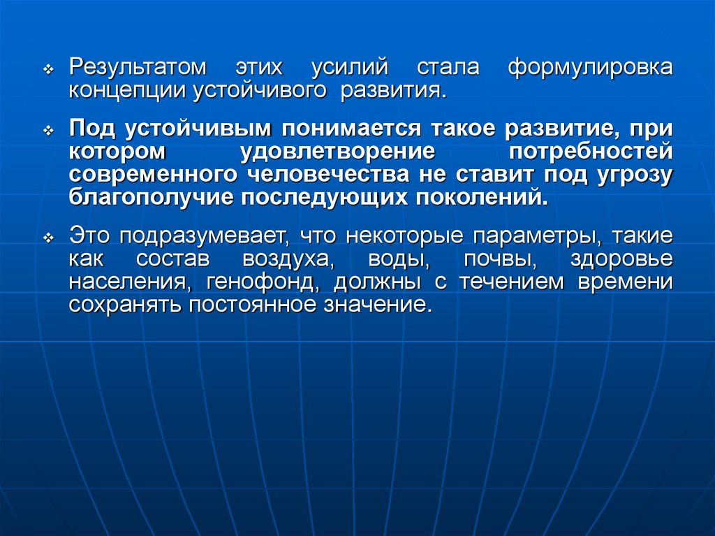 Результатом этих усилий сталаконцепции устойчивого развития.
