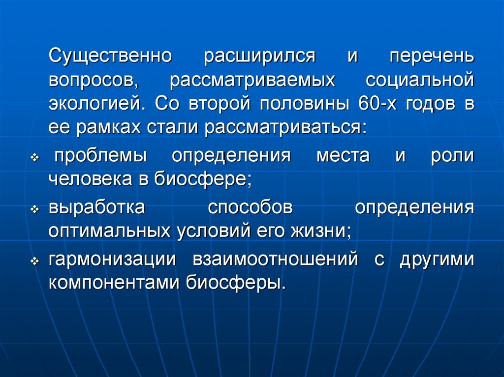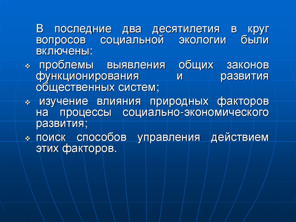 В последние два десятилетия в кругвопросов социальной экологии были