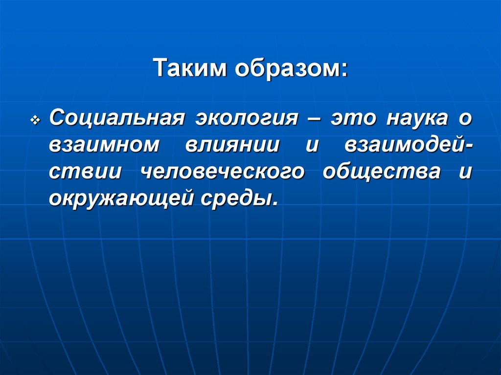 Таким образом:Социальная экология – это наука о