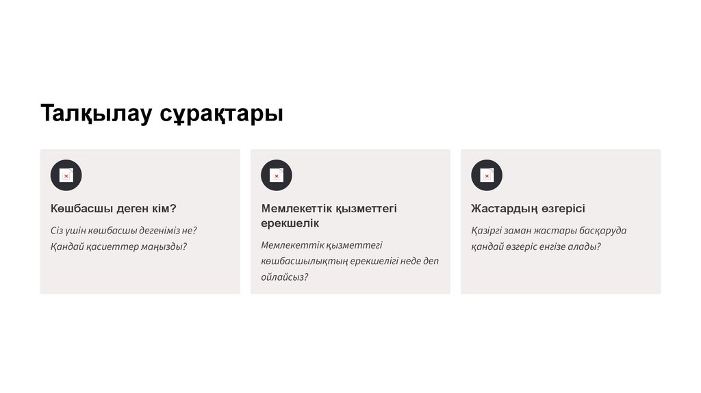 Талқылау сұрақтарыКөшбасшы деген кім?
