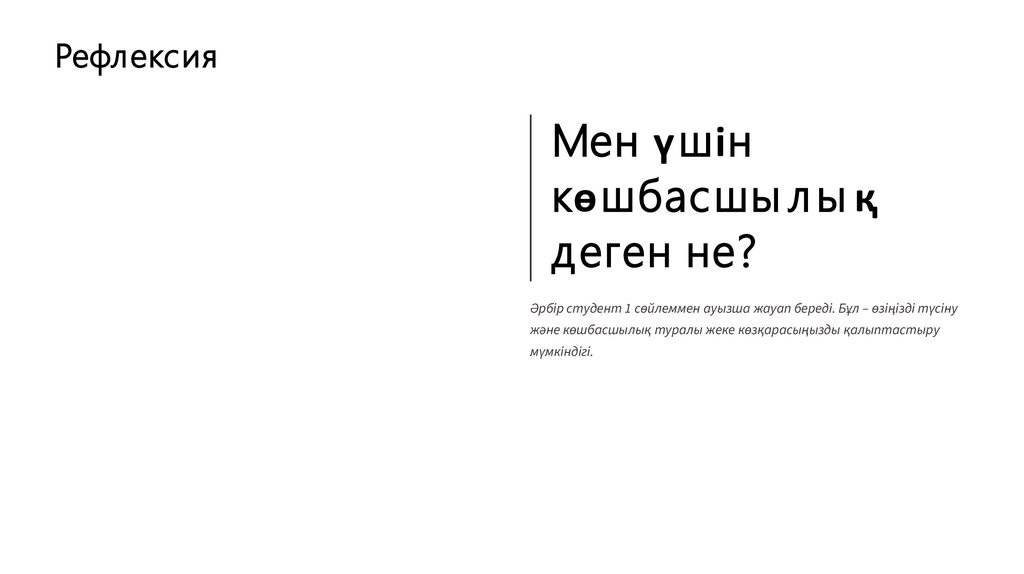 Әрбір студент 1 сөйлеммен ауызша жауап береді. Бұл – өзіңізді түсіну