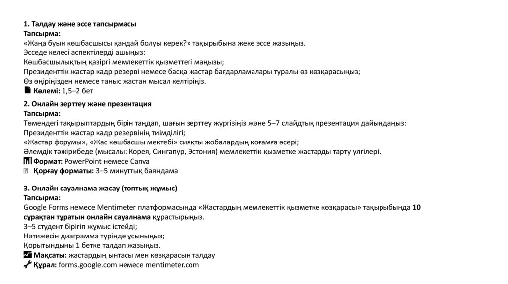 Пікіртал асЖаңа буы н мемлекетт ік қы зметкерлері –