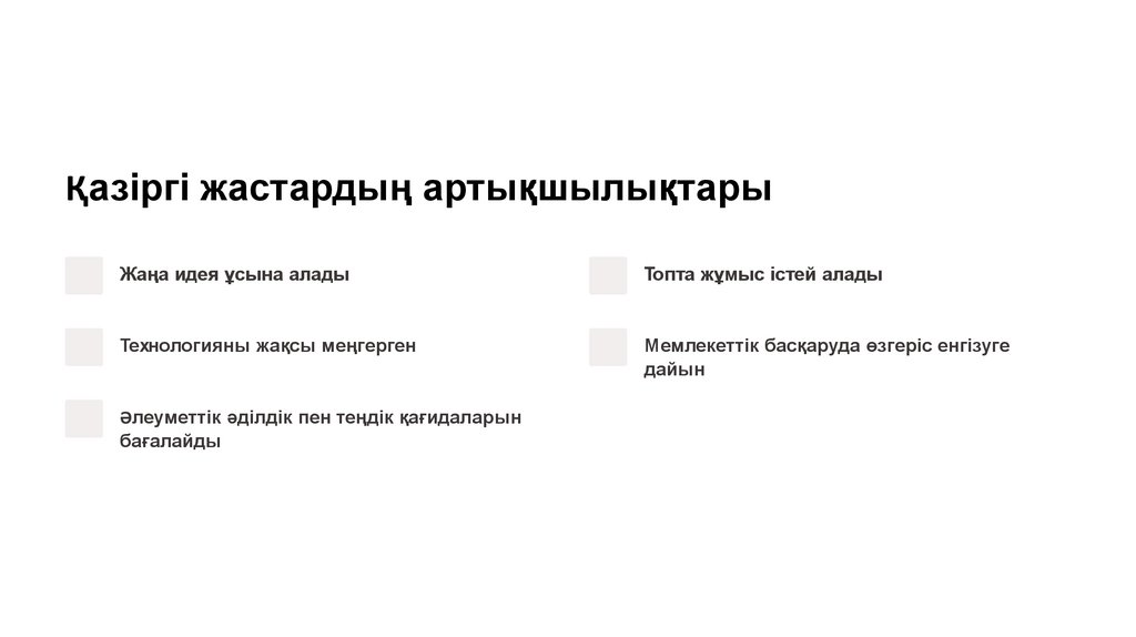 Қазіргі жастардың артықшылықтарыЖаңа идея ұсына алады