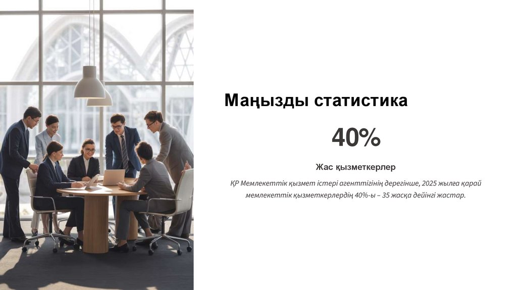 мемлекеттік қызметкерлердің 40%-ы – 35 жасқа дейінгі жастар.