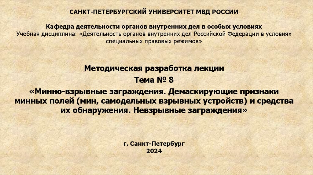 САНКТ-ПЕТЕРБУРГСКИЙ УНИВЕРСИТЕТ МВД РОССИИКафедра деятельности органов внутренних дел в особых условиях