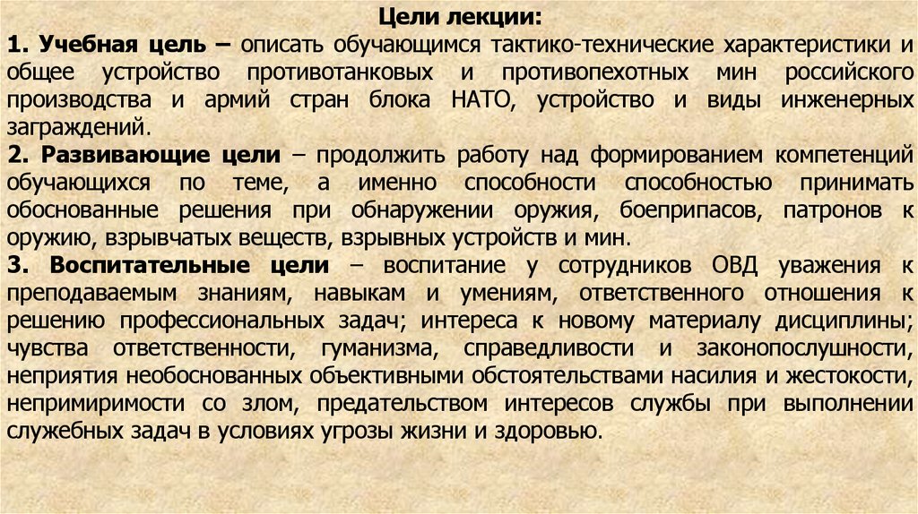 3. Воспитательные цели – воспитание у сотрудников ОВД уважения к