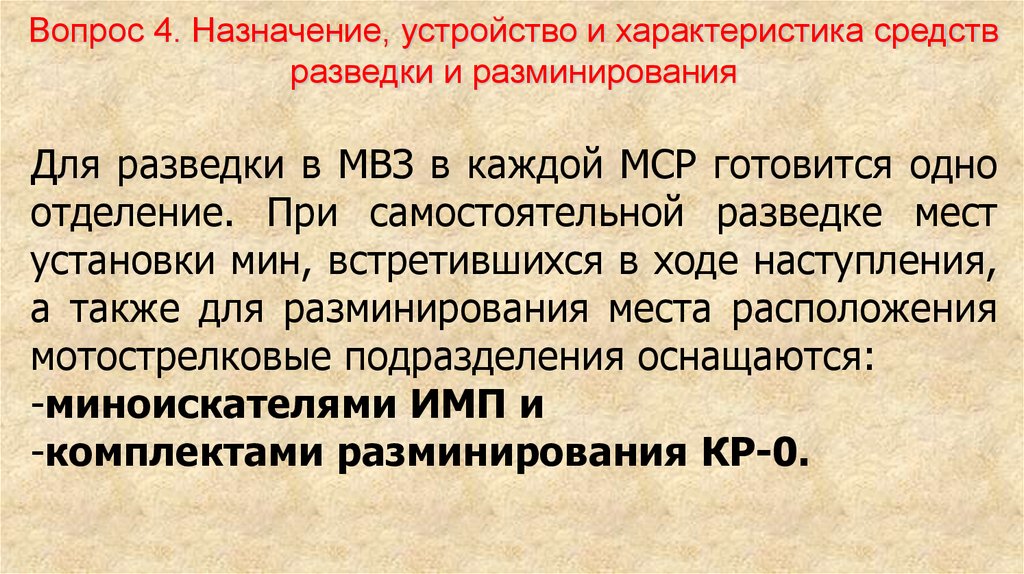 Вопрос 4. Назначение, устройство и характеристика средствразведки и разминирования