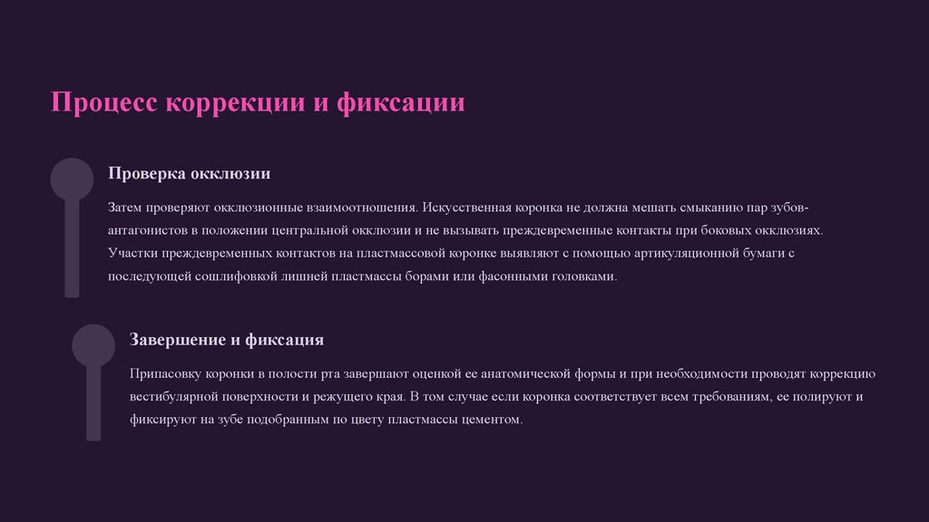 Припасовку коронки в полости рта завершают оценкой ее анатомической формы и при необходимости проводят коррекцию