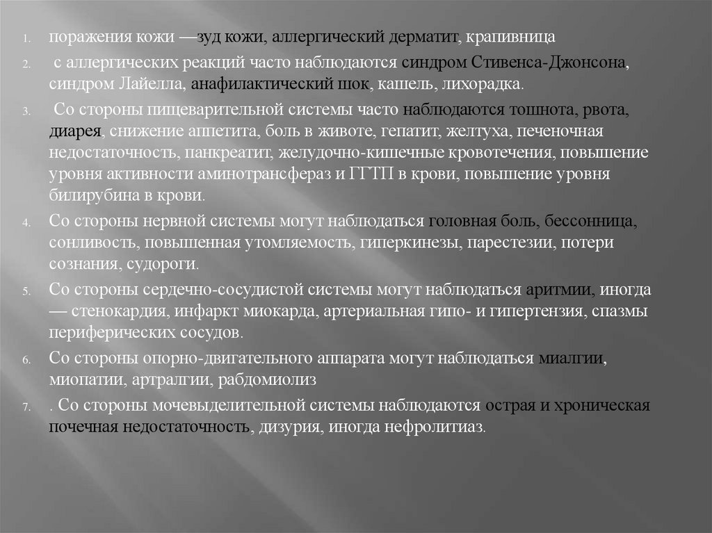 •различные варианты кожной сыпи, редко - импотенция, гинекомастия.