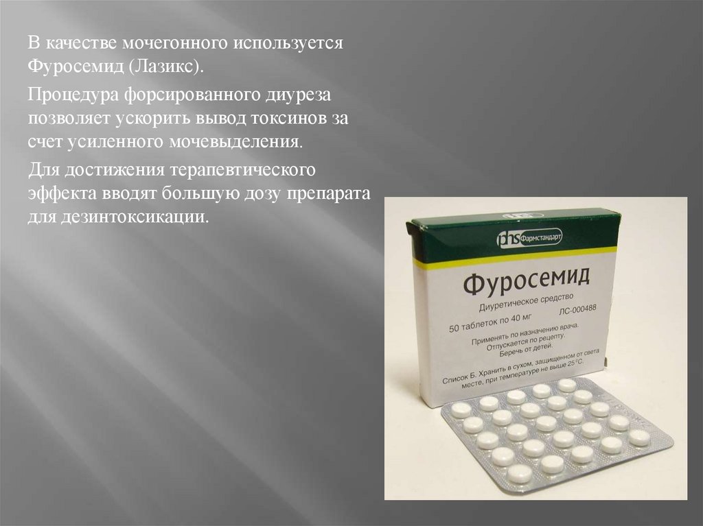 В качестве мочегонного используетсяФуросемид (Лазикс).