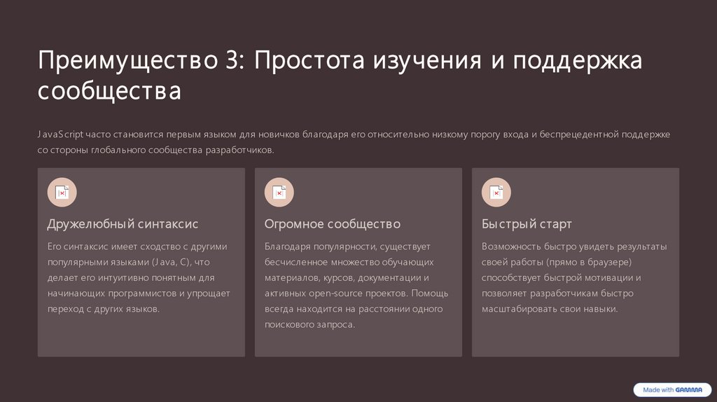 J avaS cript часто становится первым языком для новичков благодаря его относительно низкому порогу входа и беспрецедентной подд ержке