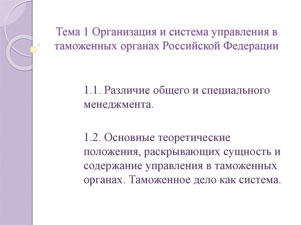 1. Тема 1 Организация и система управления в таможенных органах Российской Федерации