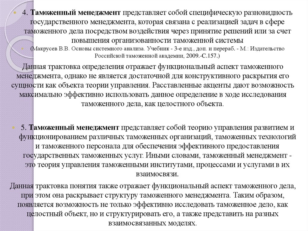 2. В специальном смысле таможенный менеджмент представляет собой форму