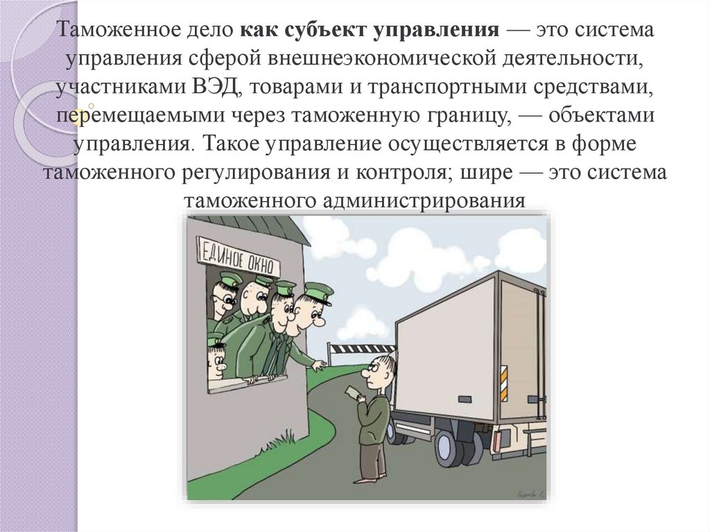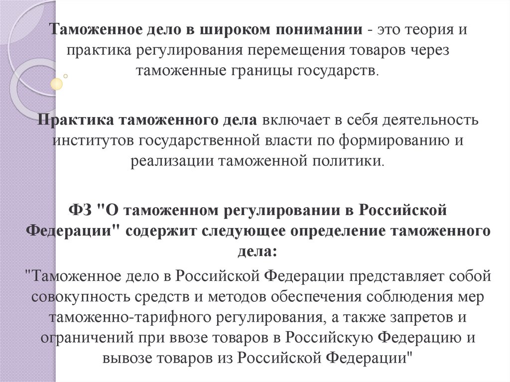 Таможенное дело в широком понимании - это теория ипрактика регулирования перемещения товаров через