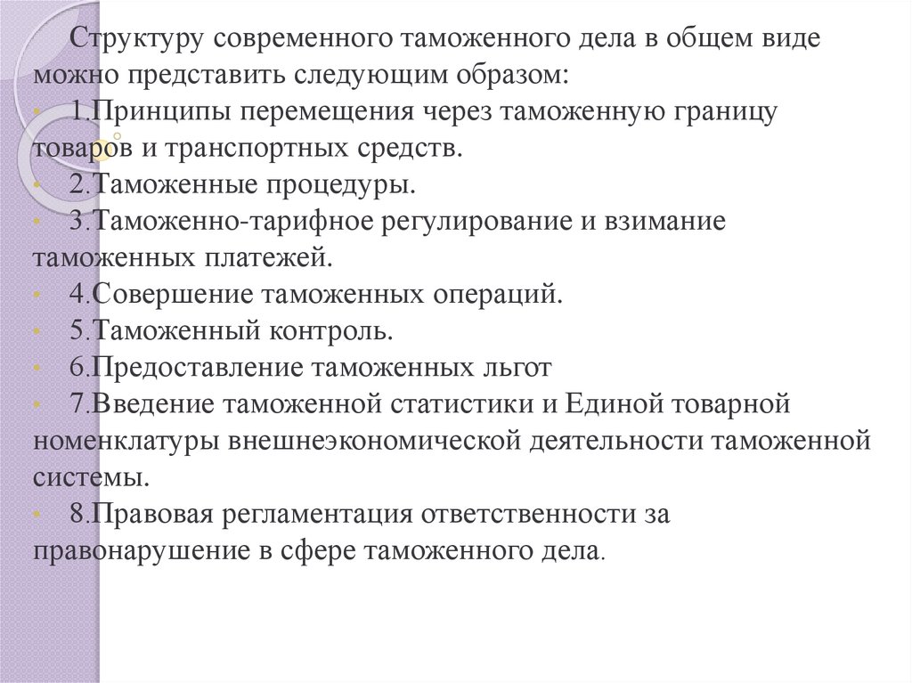 органах. Таможенное дело как система.