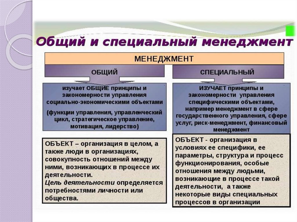 2. 1.1. Различие общего и специального менеджмента.