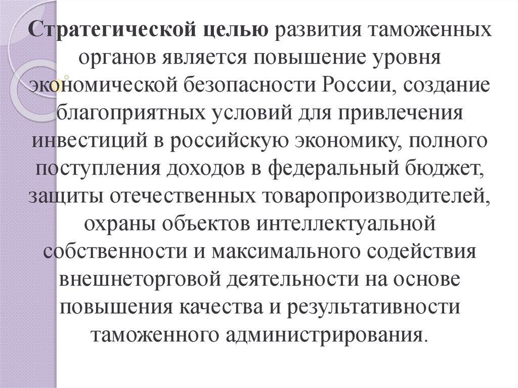 "Таможенное дело в Российской Федерации представляет собой